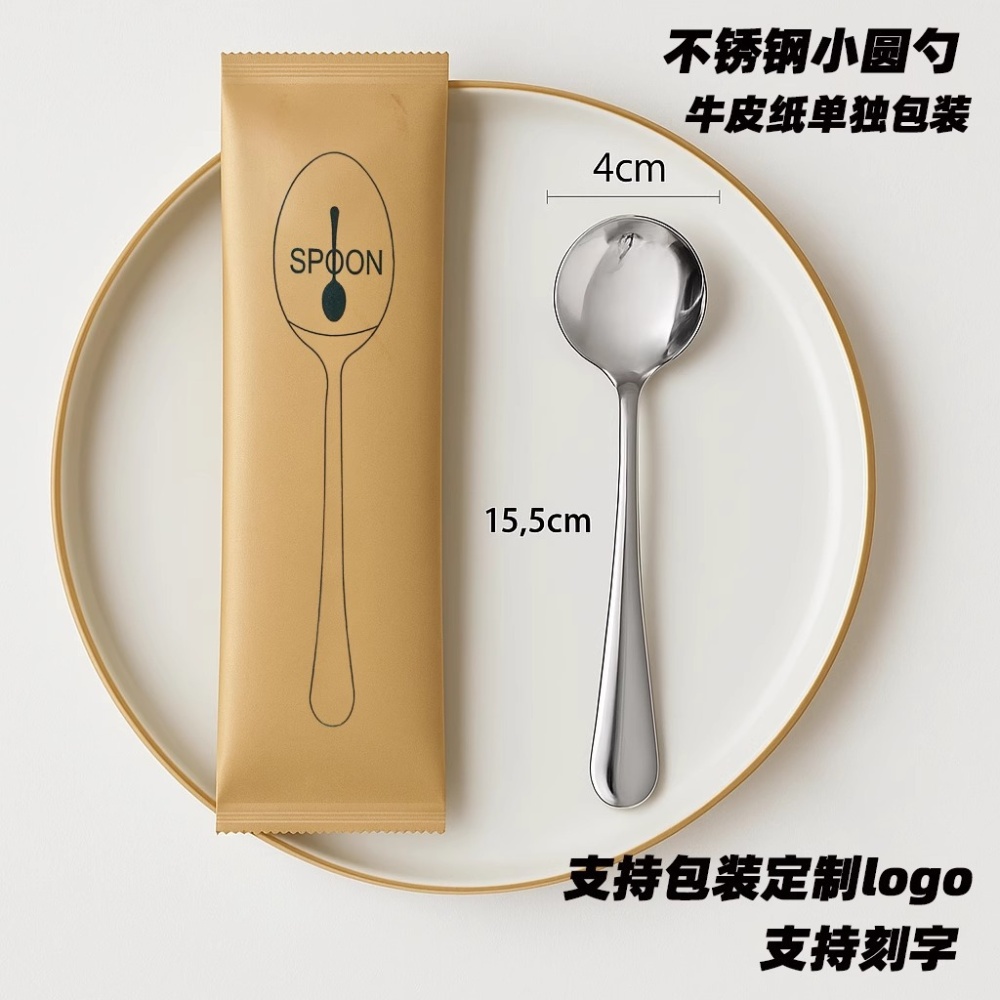 一次性勺子单独包装不锈钢商用外卖牛皮纸包装商用拌饭搅拌勺定制