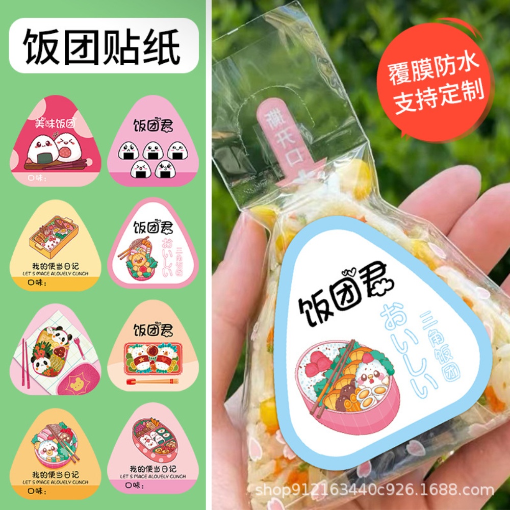 三角饭团封口贴寿司贴纸外卖打包盒不干胶二维码贴纸卡通logo