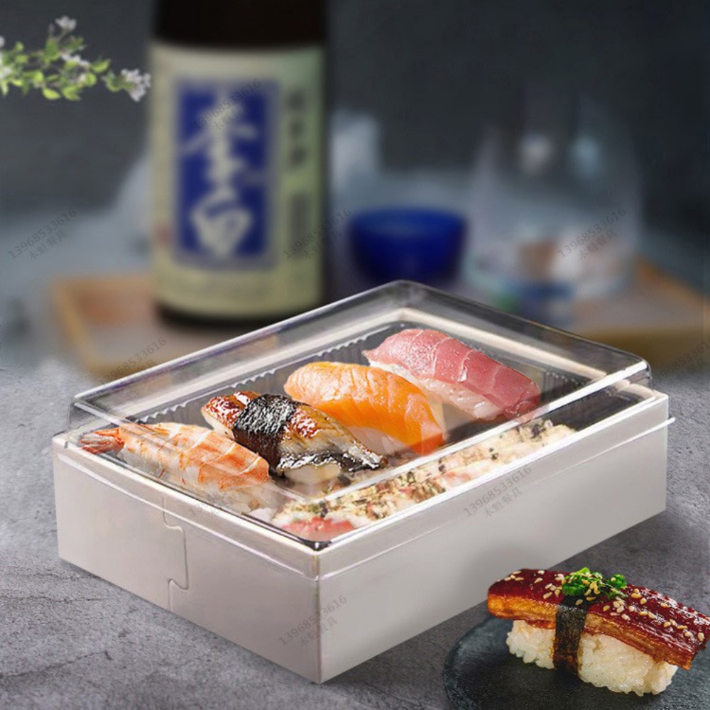 塑料寿司盒带盖打包盒三文鱼一次性餐盒透明盒日式金叶印花餐盒