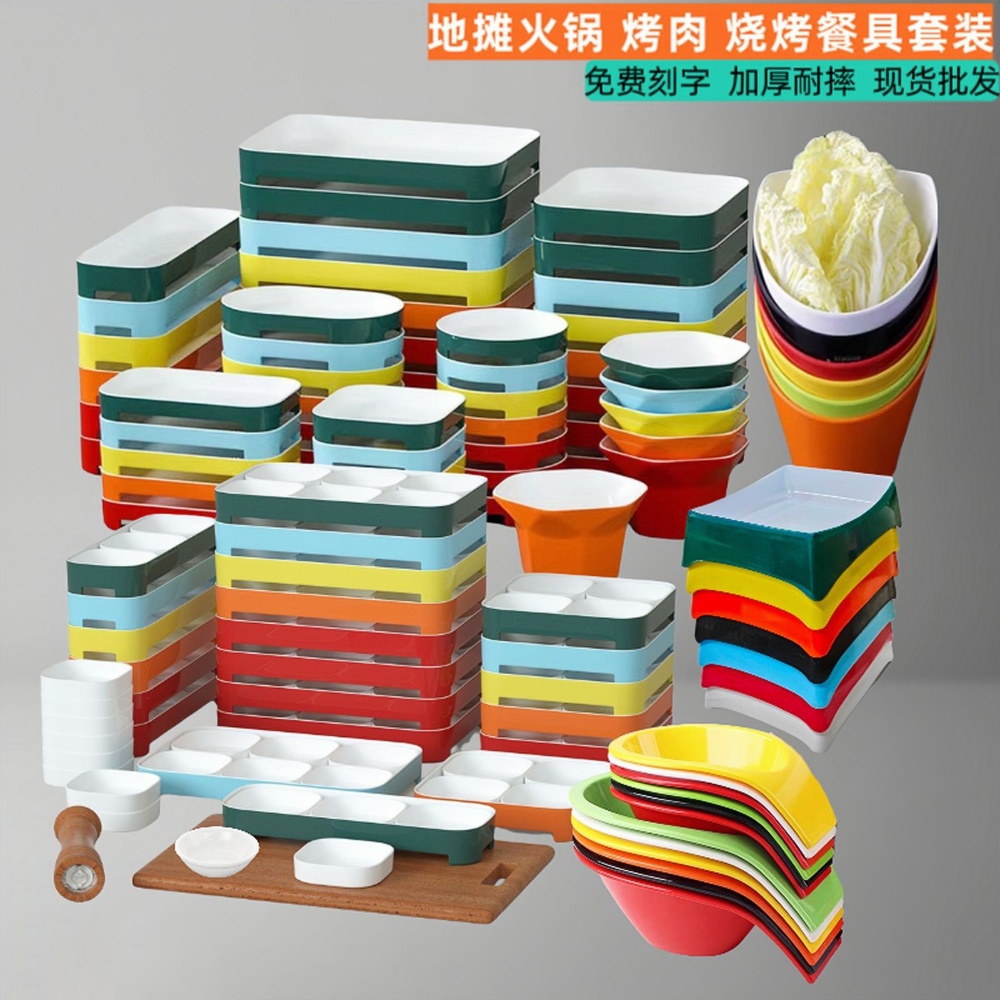 密胺批发碗盘套装商用餐厅摆台四件套碗杯勺盘子塑料碟子仿瓷餐具