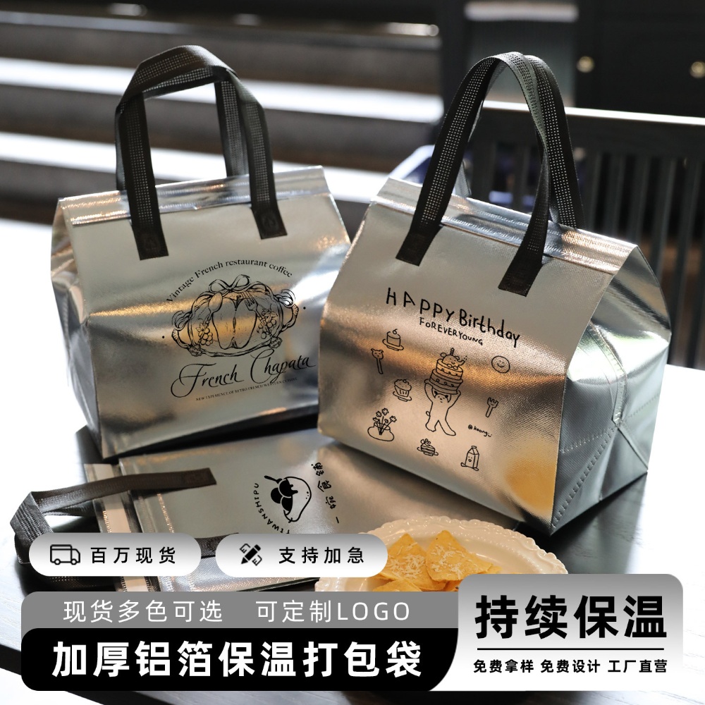 银色亮面包袋一次性外卖保温袋定制商用外送加厚无纺布包装袋