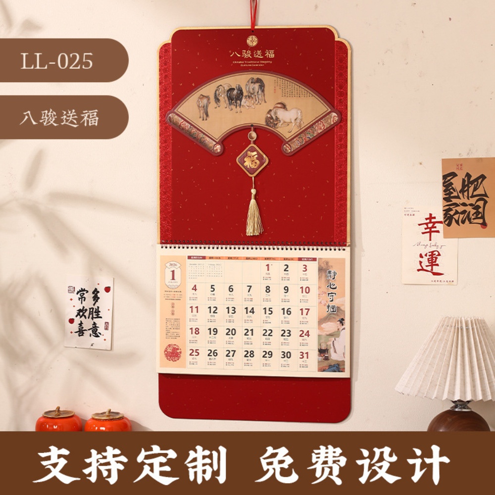 2026马年福字挂历定制烫金浮雕台历定做吊牌现货加印logo挂历